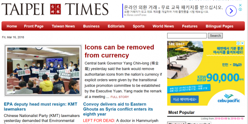 타이완 | 台北時報 (Taipei Times) 페이지 정보 작성자 거루 작성일18-03-16 18:53 조회9,449회 댓글0건 관련링크 http://www.taipeitimes.com/ 6113회 연결 이전글 다음글 검색 목록 본문 안녕하세요? 댓글목록 등록된 댓글이 없습니다. 이전글 다음글 검색 목록
